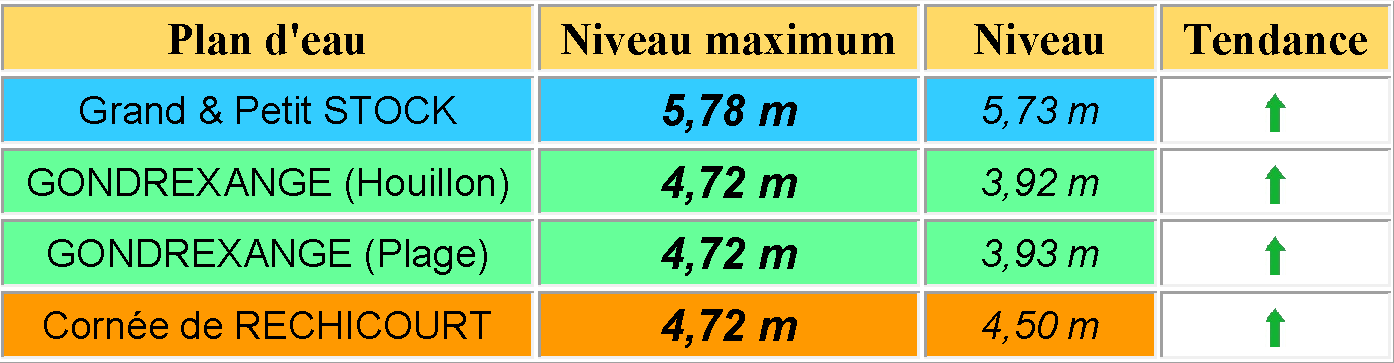 Affichages : 79211 09 mars 2026 Consulter l'historique du niveau des étangs réservoir du Stock et de Gondrexange