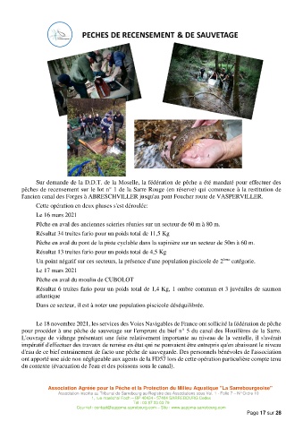 d'eau de ce bief entrainement de facto une pêche de sauvegarde. Des personnels bénévoles de l'association