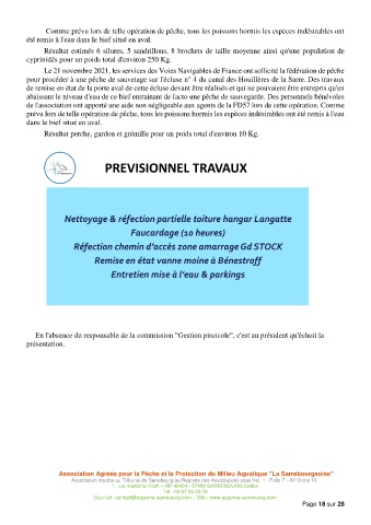 Le 21 novembre 2021, les services des Voies Navigables de France ont sollicité la fédération de pêche