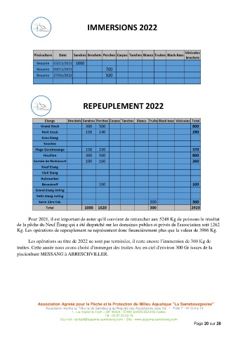 de la pêche du Neuf Étang qui a été dispatché sur les domaines publics et privés de l'association soit 1262