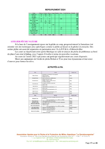 sorties pêche ont aussi été organisées en partenariat avec l'A.A.P.P.M.A. d'Abreschviller.