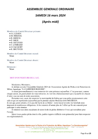Je déclare ouverte l'Assemblée Générale 2024 de l'Association Agréée de Pêche et de Protection du