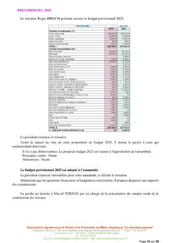 Le trésorier Roger HIRSCH présente ensuite le budget prévisionnel 2025.