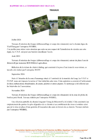 Travaux d’entretien des berges (débroussaillage et coupe des rémanents) de la zone de pêche du