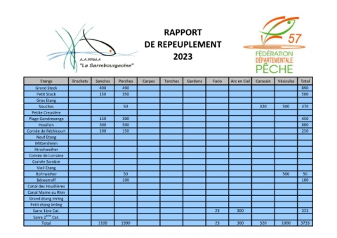Etangs Brochets Sandres Perches Carpes Tanches Gardons Fario Arc en Ciel Carassin Vésicules Total
