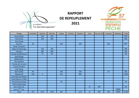 Etangs Brochets Sandres Perches Carpes Tanches Gardons Fario Arc en Ciel Carassin Vésicules Total