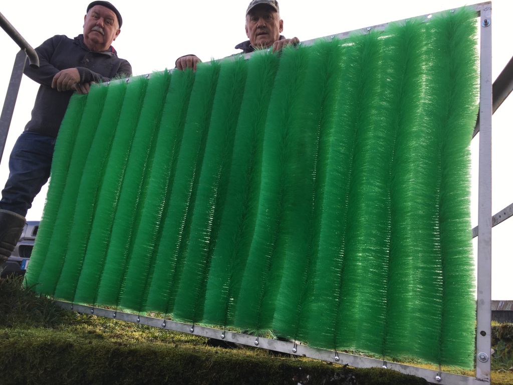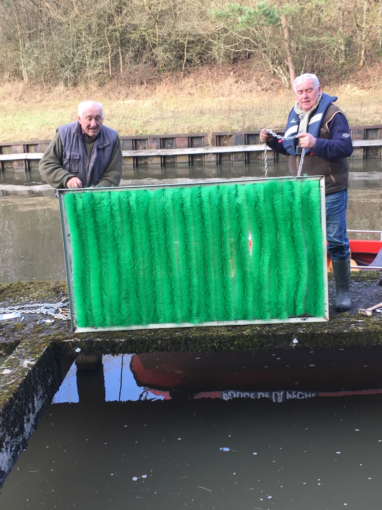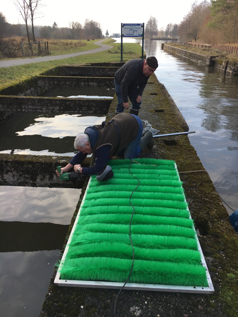 Les supports des frayères artificielles sont composés de cadres en inox ou en acier (2.00m x 1,00m) sur lesquels sont fixés 14 balais. Ces balais, réalisés à partir de fibres synthétiques, sont reconnus comme d’excellents supports de reproduction pour les espèces piscicoles.