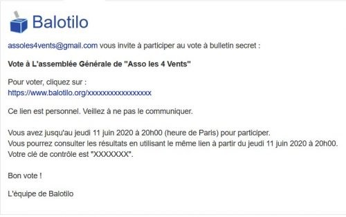 Vous recevrez un message électronique de Balotilo comme ci-après