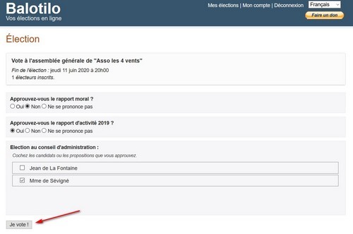 À la fin, surtout ne pas oublier de cliquer sur Je Vote