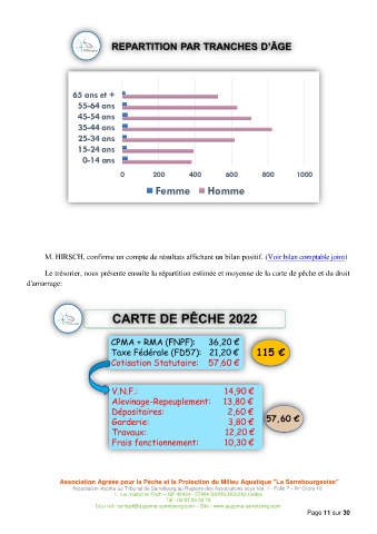 Le trésorier, nous présente ensuite la répartition estimée et moyenne de la carte de pêche et du droit
