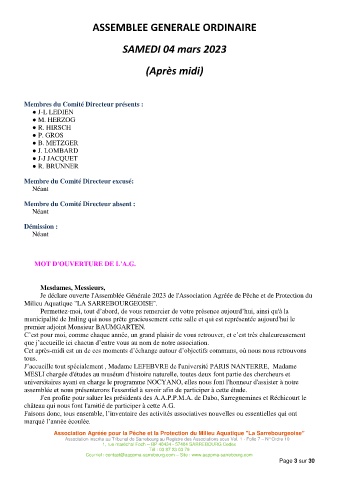 Je déclare ouverte l'Assemblée Générale 2023 de l'Association Agréée de Pêche et de Protection du