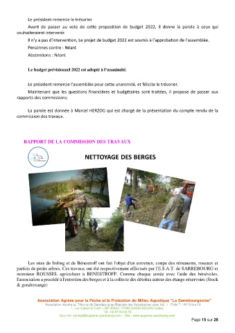 l'association a procédé à l'entretien des berges et à la collecte des détritus autour des étangs-réservoirs (Stock