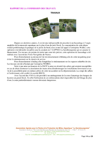 financement. Ces travaux ont permis de traiter une zone très précise, cette opération de faucardage a été