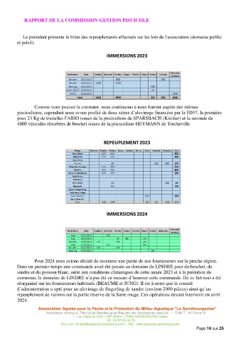RAPPORT DE LA COMMISSION GESTION PISCICOLE